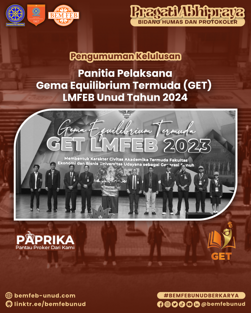 Pengumuman Kelulusan Panitia Pelaksana Gema Equilibrium Termuda (GET) LMFEB Unud Tahun 2024