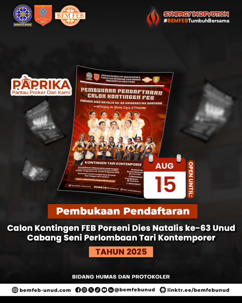 Pembukaan Pendaftaran Calon Kontingen FEB Porseni Dies Natalis Ke-63 Universitas Udayana Cabang Seni Perlombaan Tari Kontemporer