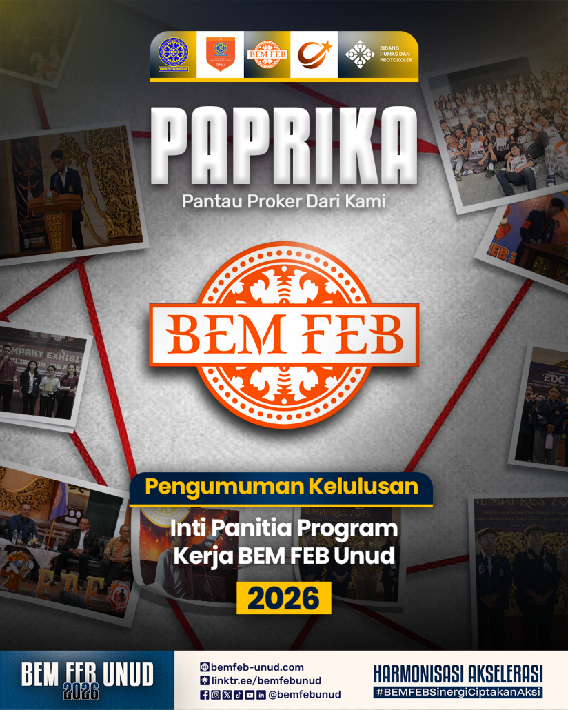 PAPRIKA: Pengumuman Kelulusan Inti Panitia Program Kerja BEM FEB Unud Tahun 2026